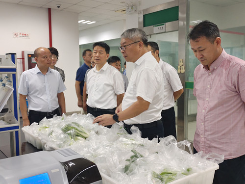 考評(píng)組實(shí)地考察了通農(nóng)物流蔬菜交易區(qū)和農(nóng)產(chǎn)品檢驗(yàn)檢測中心。在通農(nóng)物流檢驗(yàn)檢測中心觀看了通農(nóng)物流的宣傳片,查看了農(nóng)產(chǎn)品檢驗(yàn)檢測工作情況,并重點(diǎn)詢問了市場農(nóng)產(chǎn)品溯源系統(tǒng)的推進(jìn)情況、農(nóng)產(chǎn)品檢驗(yàn)檢測合格率及不合格處置情況。通農(nóng)物流黨總支書記、董事長闞君成向考評(píng)組介紹了通農(nóng)物流目前的運(yùn)營情況,并就食品安全及“菜籃子”產(chǎn)品供給、流通、調(diào)控等方面工作進(jìn)行了深入交流。