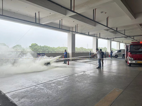 演練于下午2點(diǎn)正式開(kāi)始。首先,模擬了在糧油大廳二樓西側(cè)停車場(chǎng)貨車發(fā)生自燃,濃煙滾滾的場(chǎng)景。然后,通訊組成員在接到火情報(bào)警后及時(shí)向“119”消防救援部門(mén)報(bào)警(模擬),疏散引導(dǎo)組成員將大家迅速有序地疏散到安全區(qū)域。安保部應(yīng)急救援小組在應(yīng)急救援預(yù)案啟動(dòng)后3分鐘之內(nèi)迅速駕駛公司自備消防車到達(dá)失火地點(diǎn),聽(tīng)從指揮人員的統(tǒng)一指揮,利用消防車實(shí)施撲救,防止火勢(shì)蔓延。