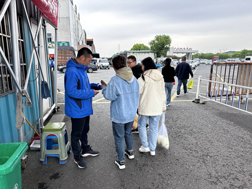 五一假期是水果區(qū)交易的旺季,工作量也隨即增加,水果區(qū)門崗驗票員管棟梁、范楊、蔣偉偉等人認真仔細核驗每一張票據(jù),杜絕逃費漏費,做到出門有票,票貨一致;同時還要負責出入口的安全秩序、道路交通安全及驗票區(qū)域(含崗亭)安全和環(huán)境衛(wèi)生。責任區(qū)管理員管維維、張潔麗等人對交易區(qū)內(nèi)大棚和大廳的安全秩序、環(huán)境衛(wèi)生等問題也不敢懈怠。她們認真檢查并排除安全隱患:1.有無明火,煙頭不落地;2.私拉亂接,線路破損裸露,使用大功率電器的;3.遮擋消防設(shè)施設(shè)備,及設(shè)備器材外觀破損,做好每月點檢臺賬記錄;4.檢查經(jīng)營戶自建冷庫旁是否長期堆放易燃物品,用電線路是否老化、壓縮機等是否正常工作;5.貨物“不落地”擺放;6.無預包裝食品;7.無誤導性包裝食品;8.亮證經(jīng)營、進銷臺賬、溯源登錄、冷庫冷柜溫度登記等。