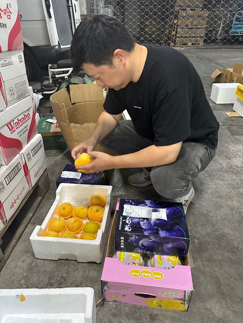 “每一批次的水果都必須是精挑細選的優(yōu)質品,優(yōu)質的品控是通農優(yōu)選的特色,天氣再炎熱,也必須認真挑揀。”通農優(yōu)選品控組員工吳志峰一邊挑選著黃桃一邊說道。通農優(yōu)選是通農物流2024年上半年新上線的線上銷售平臺,酷暑天氣下,為確保水果的品質,優(yōu)選采購組的員工每天都會根據訂單需求去水果區(qū)各個攤位認真挑選、稱重、搬運貨物;品控組則對采購的水果進一步把關,收貨、揀貨,對選品的細節(jié)嚴格把控,確保每一顆水果都能以最佳的狀態(tài)送到客戶手中。有時熱得衣服都要換掉幾件,但是員工們從無抱怨和退縮。采購組馬云說:“通農優(yōu)選是一個年輕的品牌,我們的團隊也是由一群朝氣蓬勃的年輕人組成的,我們不怕辛苦,我們要把通農優(yōu)選做成通城市民家門口的‘菜籃子’。”