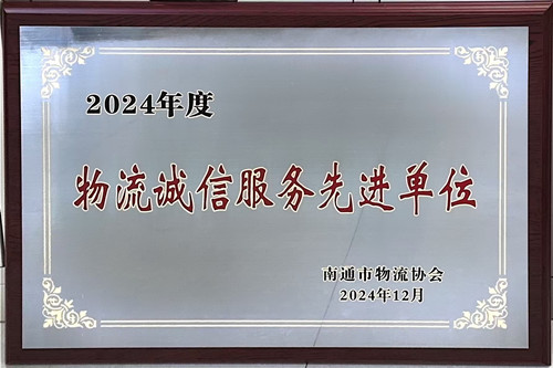 2024年12月,南通農(nóng)副產(chǎn)品物流有限公司通過(guò)南通市物流協(xié)會(huì)的審查,再次榮獲“2024年度誠(chéng)信服務(wù)先進(jìn)單位”稱號(hào)。