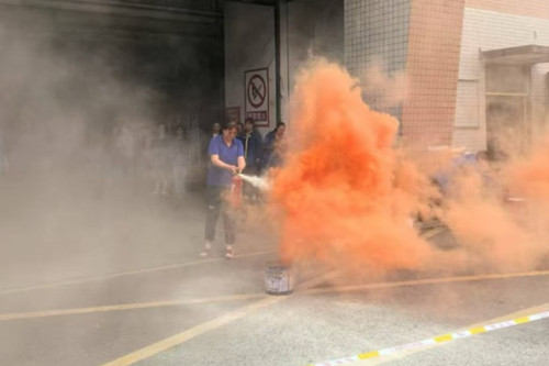 在模擬初起火災(zāi)的環(huán)節(jié),參訓(xùn)人員分組進行了滅火器實操訓(xùn)練。