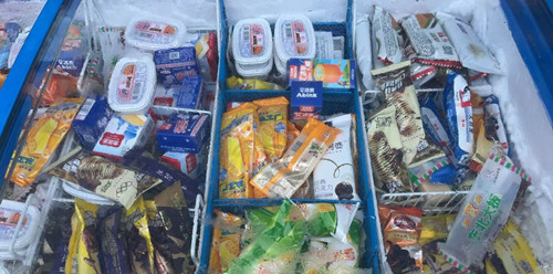 據(jù)王勇炒貨王老板介紹,今年各種品牌水和飲料制品的價格和往年相比,基本沒有變化,農(nóng)夫山泉、怡寶、康師傅這些價格親民的大眾化品牌依然是銷售主力。隨著市民的健康意識增強(qiáng),功能性飲料、含糖飲料的銷量占比有所下降。大煜潤食品冷飲批發(fā)任老板說道:“今年天氣熱得快,冷飲上得也早,雖然還沒到七八月份,但冷飲的銷量也在逐步攀升,最暢銷的還要屬鹽水棒冰系列,解暑效果佳。近年來,很多網(wǎng)紅冷飲、童年懷舊系列冷飲、低卡0反式脂肪雪糕也是銷售的主力軍?!保ǜ韶浥渌筒?吳珍鳳)