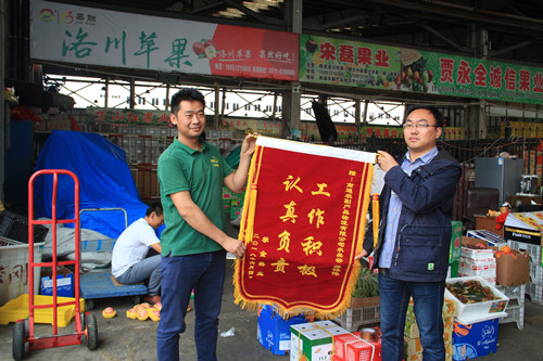 6月12日上午,通農(nóng)物流水果區(qū)收到一面錦旗,這是一位來自水果區(qū)經(jīng)營戶張坤送來的感謝錦旗,只見錦旗上印著“工作積極,認(rèn)真負(fù)責(zé)”,贈予通農(nóng)物流水果區(qū)驗票員蔣偉偉。