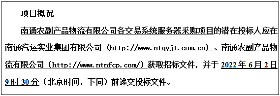 項(xiàng)目名稱(chēng):南通農(nóng)副產(chǎn)品物流有限公司各交易系統(tǒng)服務(wù)器采購(gòu)項(xiàng)目