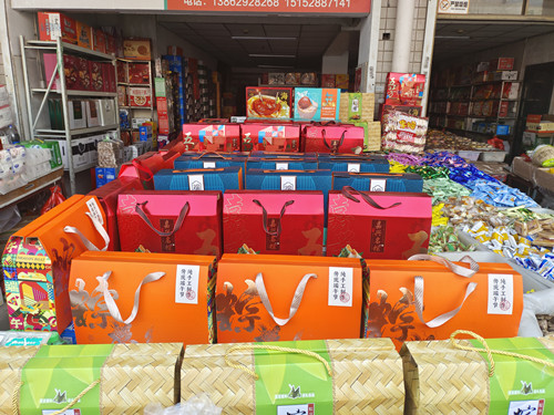 端午節(jié)臨近,在干貨大廳的店鋪里粽子已悄然上市,有禮盒裝的、袋裝的,粽子禮盒琳瑯滿目。走進(jìn)店鋪內(nèi),店鋪老板在為顧客挑選、打包。店鋪老板推出了不同品牌、不同口味的粽子,袋裝粽子普遍售價(jià)在10元以下,禮盒裝粽子價(jià)格在50元到80元不等,口味以傳統(tǒng)的白米、鮮肉、蜜棗、蛋黃、豆沙為主。