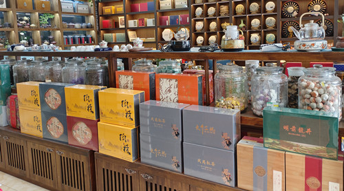 臨近春節(jié),茶葉禮盒迎來(lái)了一年中的一波銷量高峰。在通農(nóng)物流糧油大廳內(nèi)的茶葉店鋪里,各種茶葉禮盒包裝簡(jiǎn)潔雅致,散稱綠茶、紅茶、白茶、普洱、烏龍,不同產(chǎn)地的茶葉應(yīng)有盡有,品類一應(yīng)俱全。